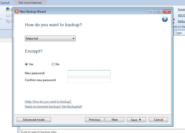 - Дальше нажимаем “save” => “save and run”. Задание для бэкапа готово. Ещё осталось настроить включение Fbackup при загрузке компьютера. Для этого нужно в главном окне выбрать File => Options => Startup и поставить галочку “Start at windows startup”