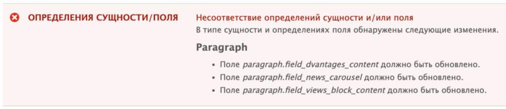 Поле paragraph.field_dvantages_content должно быть обновлено.